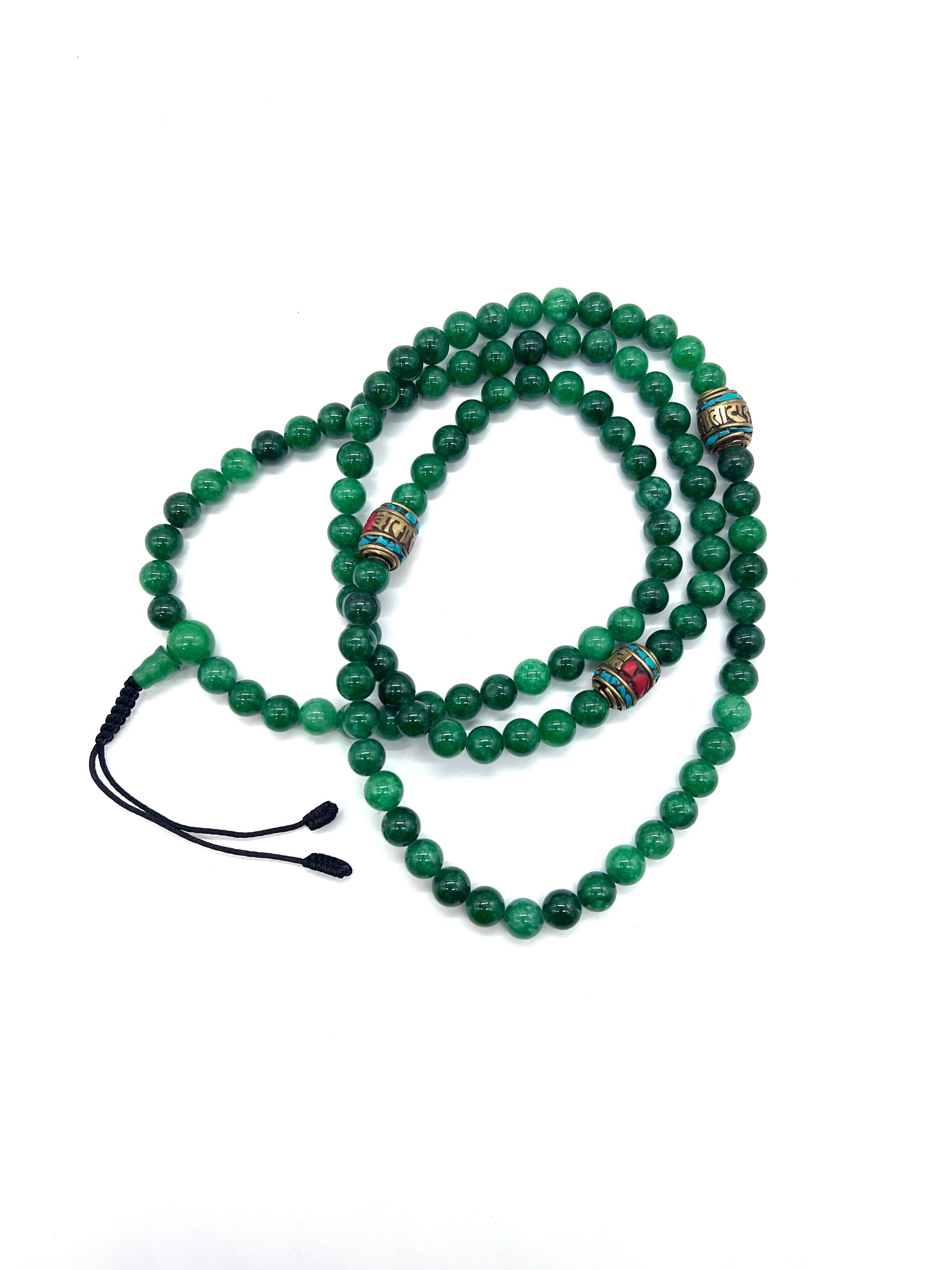 Prayer beads are used to recite mantras in meditation and spiritual practices and blessed with 108 beads. The number 108 is a spiritual and sacred number that represents the mortal desires of mankind which we must strive to overcome to achieve Nirvana.