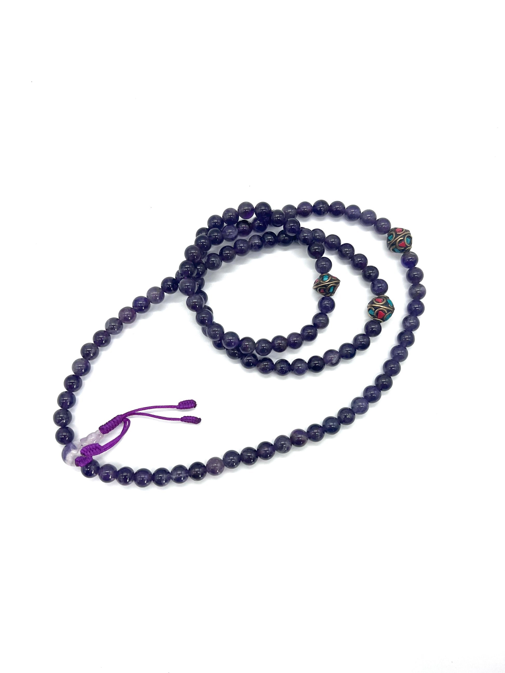Prayer beads are used to recite mantras in meditation and spiritual practices and blessed with 108 beads. The number 108 is a spiritual and sacred number that represents the mortal desires of mankind which must strive to overcome to achieve Nirvana.