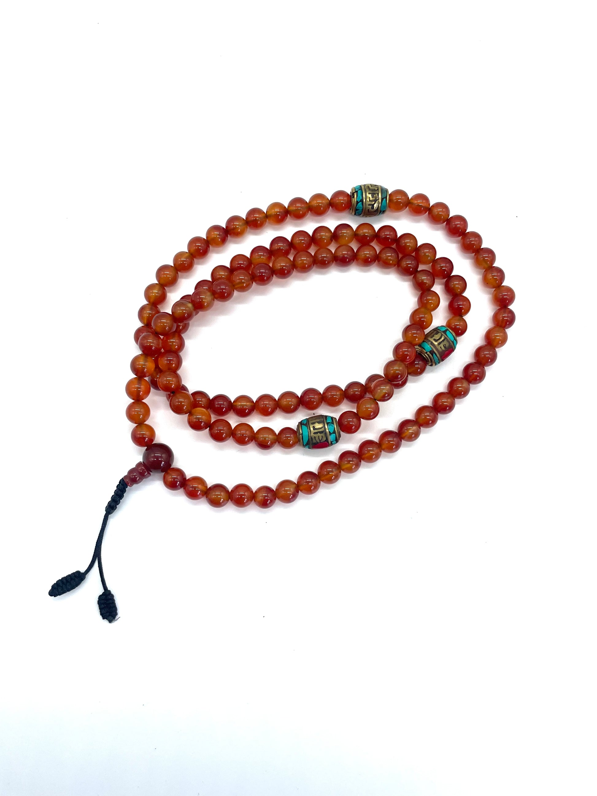 Prayer beads are used to recite mantras in meditation and spiritual practices and blessed with 108 beads. The number 108 is a spiritual and sacred number that represents the the mortal desires of mankind which must strive to overcome to achieve Nirvana.