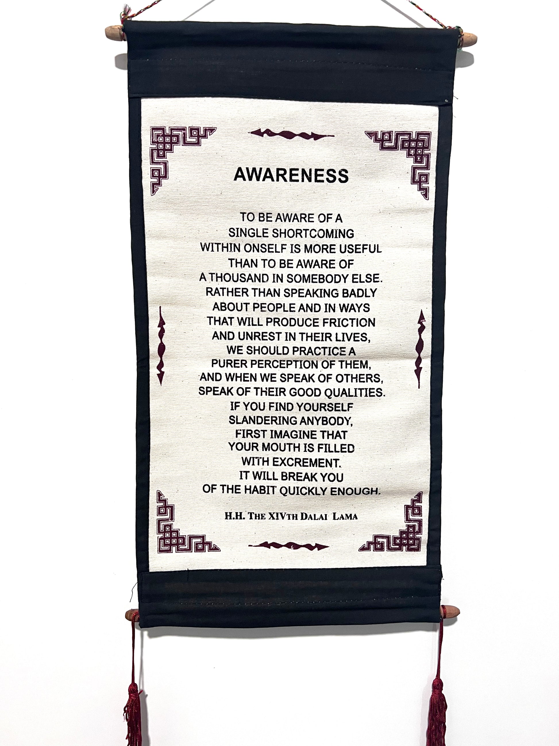 These wall hanging are inscribed with quotes of His Holiness 14th Dalai Lama. Quote will make a perfect home decor plus a gift for loved ones.