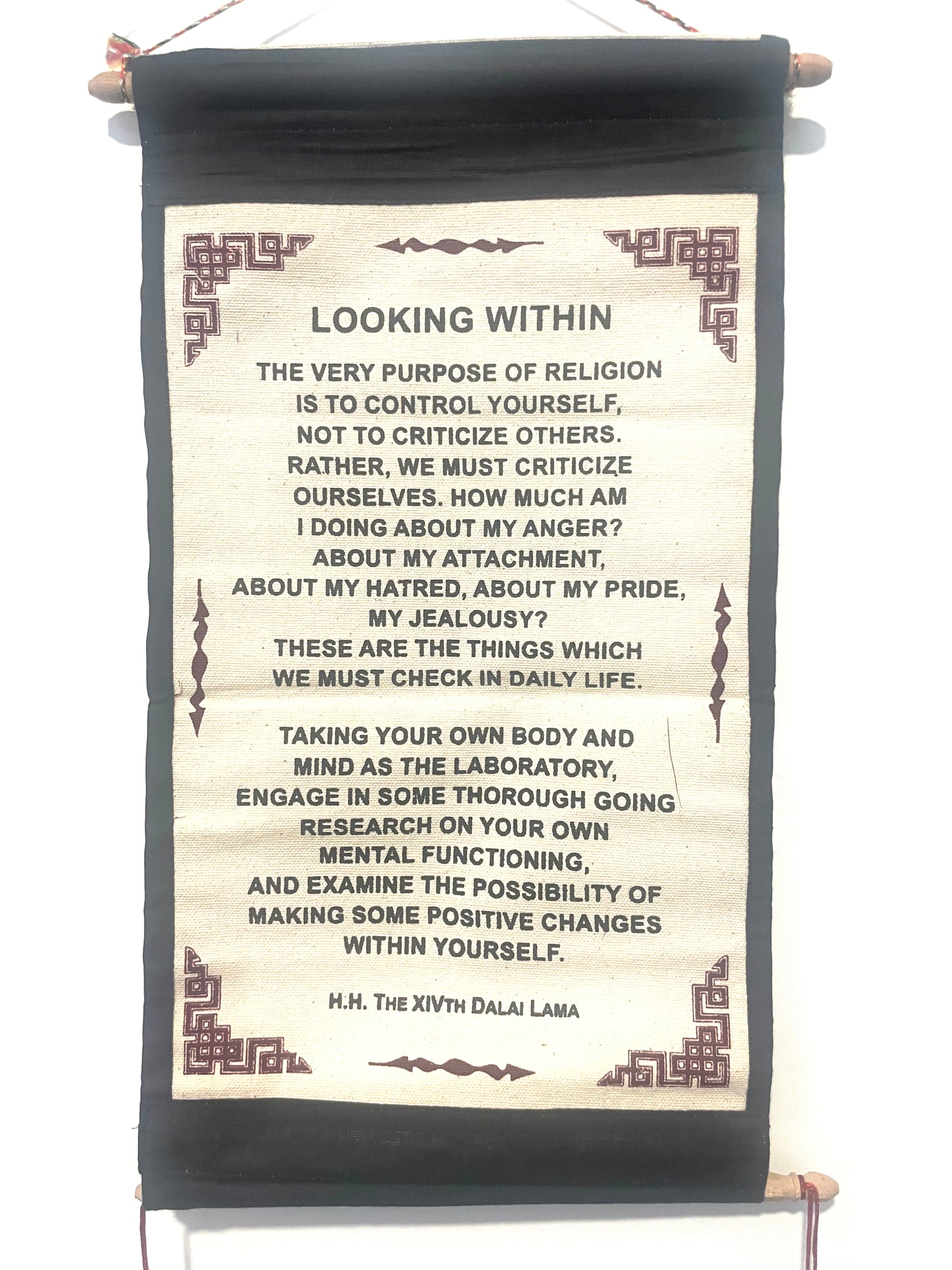 HH Dalai Lama Looking Within Quote Scroll
