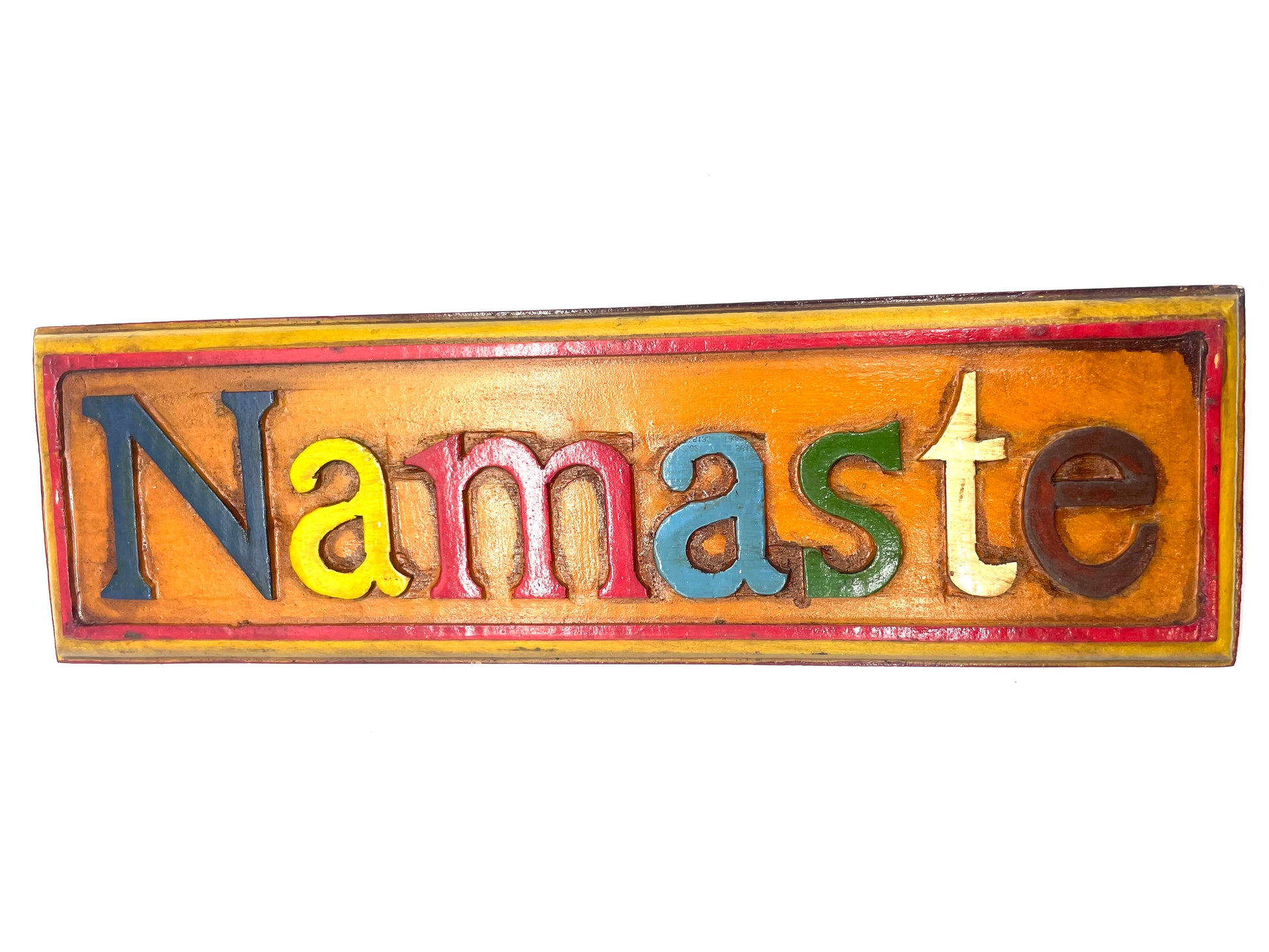 Brighten up your home and welcome in your guest with the beautifully hand carved and painted wooden Namaste sign.